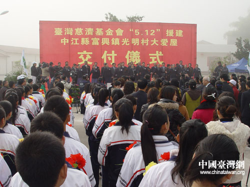 中國臺(tái)灣網(wǎng)11月22日德陽消息 日前,臺(tái)灣慈濟(jì)基金會(huì)在“5.12”汶川地震災(zāi)后援建中江縣富興鎮(zhèn)光明村農(nóng)房91戶大愛屋前舉行大愛屋交付儀式,中共德陽市委副書記張金明、省臺(tái)辦副主任張軍,臺(tái)灣慈濟(jì)基金會(huì)副總執(zhí)行長王端正等出席儀式。