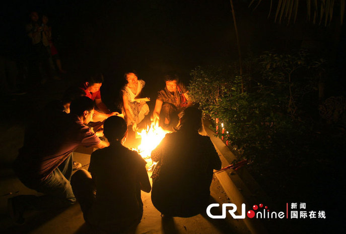 2011年4月27日晚10點(diǎn)18分,四川成都熱電廠家屬院內(nèi),在中國(guó)臺(tái)灣旅游景點(diǎn)“阿里山小火車翻覆”事件中遇難者陳道華的家屬在院內(nèi)燒紙錢、香蠟祭奠為逝者送行。