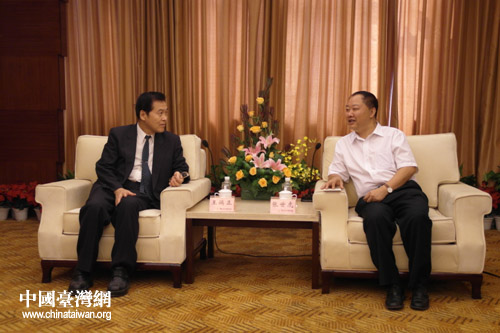 張世虎(右)會(huì)見(jiàn)王端正(左)。(圖片來(lái)源:綿陽(yáng)市臺(tái)辦)