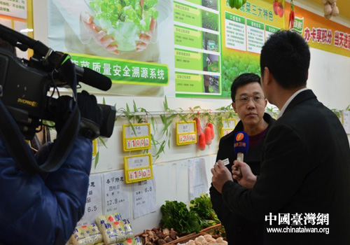 采訪組一行在成都市壹綠鮮食品有限公司可溯源安全食品專業(yè)連鎖店采訪。(圖片來源:成都市臺辦)