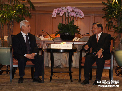 四川省政協(xié)主席陶武先在臺北會見;鶗麻L江丙坤。圖片來源:四川省臺辦