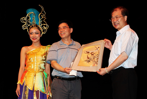 金門(mén)觀眾向四川演員獻(xiàn)上鮮花。