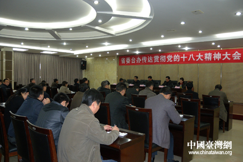 四川省臺(tái)辦召開(kāi)傳達(dá)貫徹黨的十八精神大會(huì)。(圖片來(lái)源:四川省臺(tái)辦)