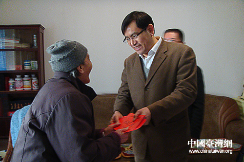 中國臺灣網(wǎng)1月31日德陽消息 盛世騰龍辭舊歲,一元復(fù)始?xì)庀笮。在新春佳?jié)即將到來之際,1月31日,德陽市委副書記劉宏葆在德陽市臺辦主任林永成、副主任涂惠的陪同下,代表市委、市政府走訪慰問了德陽市部份重點臺屬,送去了慰問金、慰問信,帶去了黨委和政府對臺胞臺屬的新春祝福。