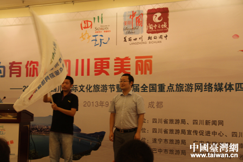 中國(guó)臺(tái)灣網(wǎng)9月3日成都消息 “因?yàn)橛心,四川更美麗—?013中國(guó)四川國(guó)際文化旅游節(jié)暨首屆全國(guó)重點(diǎn)旅游網(wǎng)絡(luò)媒體四川行”大型聯(lián)合采訪活動(dòng)9月2日在成都正式拉開帷幕。本次活動(dòng)為期8天,將深入川東北——遂寧、廣安、南充、廣元等多個(gè)知名旅游景點(diǎn)進(jìn)行采訪采風(fēng)。