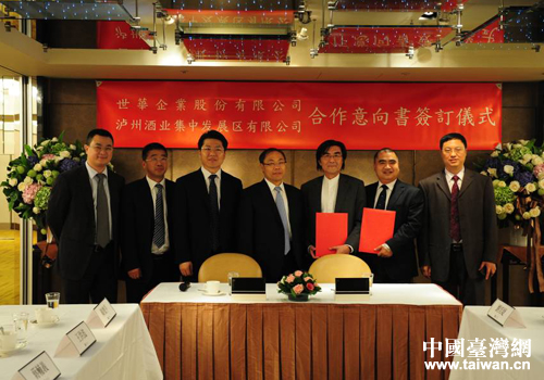 瀘州老窖與臺(tái)灣統(tǒng)一集團(tuán)世華股份公司合作簽字儀式。
