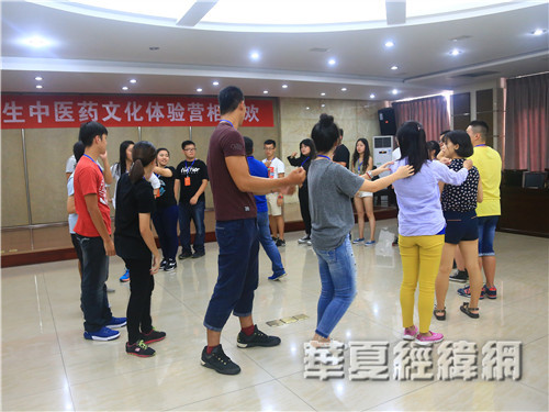 隨后,“發(fā)現(xiàn)中藥‘川字號(hào)’”川臺(tái)學(xué)生相見歡活動(dòng)正式展開。在四川省臺(tái)辦新聞處主任科員李華軍的帶領(lǐng)下,兩岸學(xué)子通過熱身運(yùn)動(dòng)與游戲“愛的抱抱”逐漸親近,經(jīng)過更深入的自我介紹后,彼此從陌生更加熟悉。很有意思的是,在此次活動(dòng)中一位四川學(xué)生遇到了與她名字發(fā)音相同的另一位臺(tái)灣“思慧”同學(xué),兩人也像親姐妹一般一見如故。此外,還有一名四川學(xué)生與臺(tái)灣學(xué)生不約而同都帶了針灸針,并表示愿意分享自己的針灸經(jīng)驗(yàn)與大家分享。