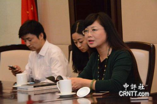 成都武侯祠博物館副館長何紅英向中評社四川走親采訪團(tuán)簡報博物館 的發(fā)展?fàn)I運(yùn)概況(中評社 趙家麟攝)