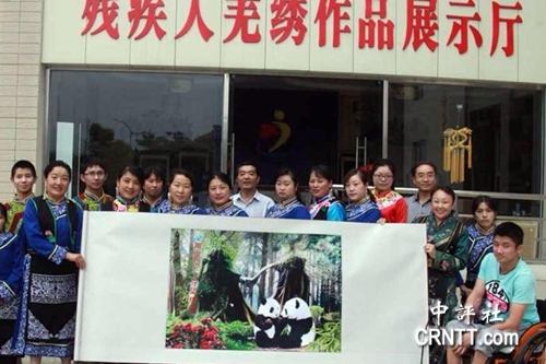 從創(chuàng)意構(gòu)思到完成制作,歷時整整7天,在36位繡娘輪班趕制下,完成了《兩岸同心 守望相助》羌秀。更讓人意想不到的是,36位繡娘中有30位竟是因汶川強震致殘的繡娘。正是有著對“天災(zāi)無情”的共鳴,繡娘們用這幅飽含同胞深情厚誼的作品,表達出對臺灣同胞血濃于水的親情。張桂熙也希望有機會能到臺灣進行文化交流,用作品鼓舞更多的兩岸同胞。