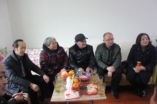 慰問(wèn)現(xiàn)年96歲的臺(tái)灣老兵盧鳳陽(yáng)(左三)