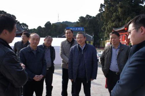 四川省臺辦主任周敏謙(右三)在綿陽梓潼縣七曲山實(shí)地考察“第三屆海峽兩岸文昌文化交流活動”籌備工作