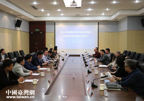 臺(tái)灣生物科技與健康照護(hù)產(chǎn)業(yè)合作推動(dòng)小組副召集人胡幼圃在“綿陽(yáng)臺(tái)商產(chǎn)業(yè)園”推介會(huì)上發(fā)言
