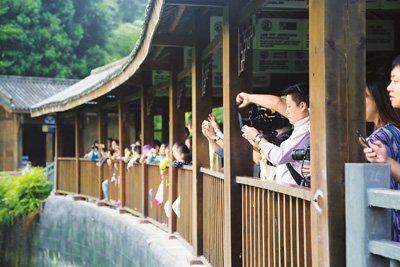 兩岸記者和其他觀眾一起,圍著熊貓不停拍照。