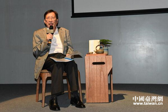 劉兆玄在成都方所圖書館與讀者分享新書《雁城諜影》創(chuàng)作歷程。(圖片來源:四川省臺辦)