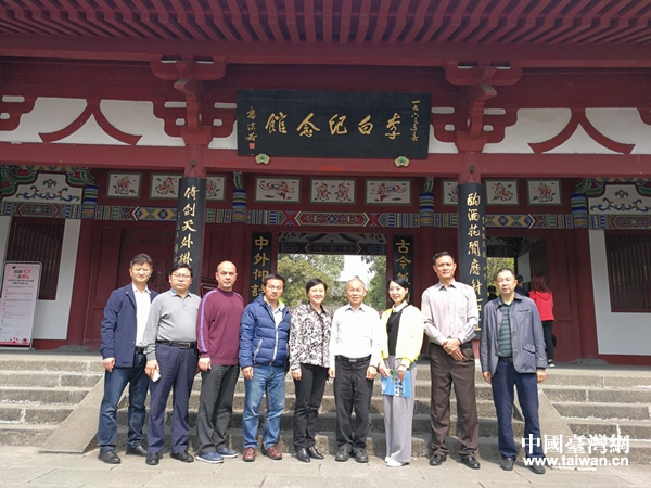中國國民黨前副主席林政則一行在李白紀念館合影留念。(圖片來源:江油市臺辦)