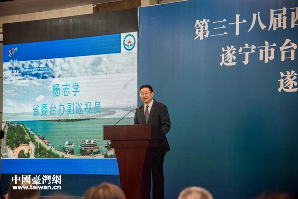四川省臺(tái)辦副巡視員楊志學(xué)參會(huì)并致辭。(圖片來(lái)源:遂寧市臺(tái)辦)