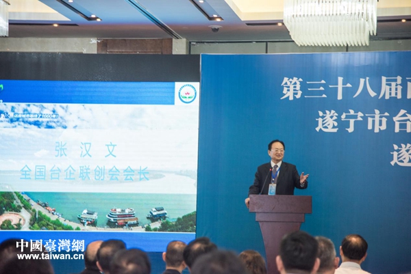 全國(guó)臺(tái)企聯(lián)創(chuàng)會(huì)會(huì)長(zhǎng)張漢文致辭。(圖片來(lái)源:遂寧市臺(tái)辦)