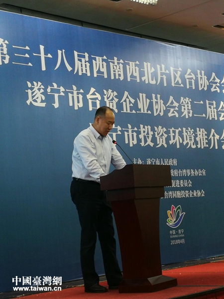 遂寧市委常委、副市長(zhǎng)張列兵致辭。(圖片來(lái)源:遂寧市臺(tái)辦)