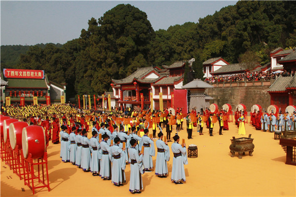 據(jù)悉,本次祭祀大典是在清康熙三年《文昌樂章》的基礎(chǔ)上,由有關(guān)專家進(jìn)行反復(fù)改編而成,既突出古色古韻,又體現(xiàn)對(duì)優(yōu)秀傳統(tǒng)文化的傳承創(chuàng)新,作為一道旅游文化大餐向外界展示。