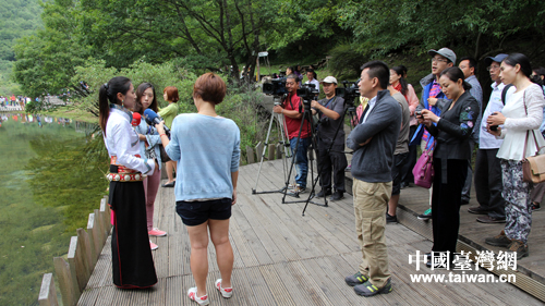 兩岸媒體在九寨溝進(jìn)行聯(lián)合采訪。(中國臺灣網(wǎng) 馬迪 攝)