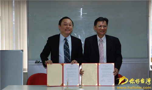 商業(yè)總會(huì)秘書(shū)長(zhǎng)賴榮坤(右)與兩岸青年中心董事長(zhǎng)陳炳宏簽訂戰(zhàn)略合作意向書(shū)。