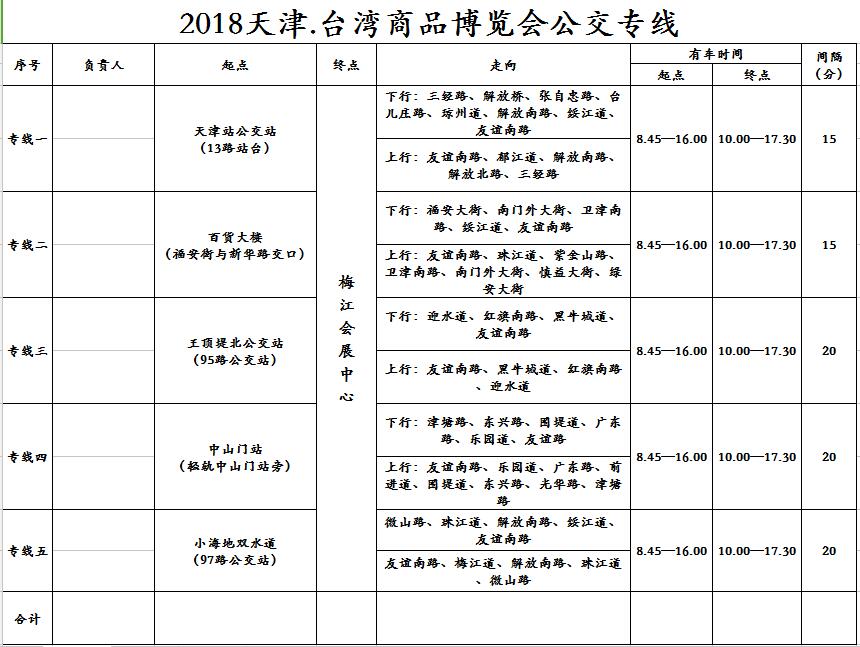 2018年天津·臺(tái)灣商品博覽會(huì)公交專線。