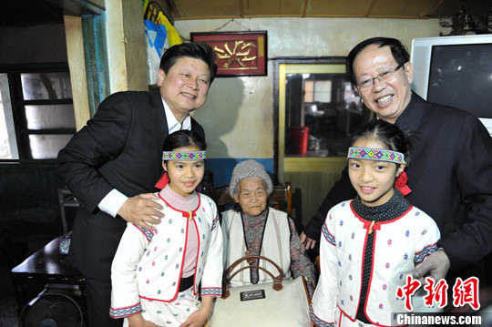 2月22日,廣西壯族自治區(qū)黨委副書記危朝安一行深入臺(tái)灣花蓮基層民眾家中和田間地頭,與他們敘親情、談?dòng)颜x,共同探討農(nóng)業(yè)生產(chǎn)發(fā)展之路。在萬榮鄉(xiāng)萬榮村,危朝安看望了80歲村民彭記妹,向她贈(zèng)送了慰問品。圖為危朝安(右)、花蓮縣縣長(zhǎng)傅崐萁與老人及老人孫女合影。中新社發(fā) 蔣雪林