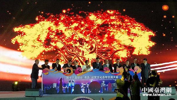 兩岸領(lǐng)導(dǎo)嘉賓共同啟動(dòng)大會(huì)開(kāi)幕儀式。(中國(guó)臺(tái)灣網(wǎng) 陳文韜 攝)