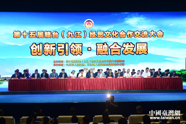 8月30日上午,第十五屆贛臺(tái)(九江)經(jīng)貿(mào)文化合作交流大會(huì)(簡(jiǎn)稱贛臺(tái)會(huì))在江西九江開幕。中共中央臺(tái)辦、國務(wù)院臺(tái)辦主任張志軍,江西省省長劉奇,臺(tái)灣三三企業(yè)交流會(huì)會(huì)長江丙坤,全國臺(tái)企聯(lián)會(huì)長王屏生等出席了大會(huì),本屆“贛臺(tái)會(huì)”參會(huì)人數(shù)約800人左右,其中臺(tái)灣嘉賓約500人。現(xiàn)場(chǎng)共簽約79個(gè)臺(tái)資入贛項(xiàng)目,簽約合同金額達(dá)40.6億美元。