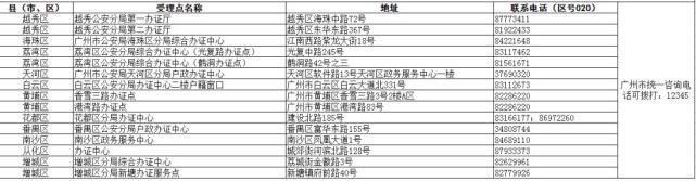 廣州市辦理受理點及聯(lián)系方式(如下圖)