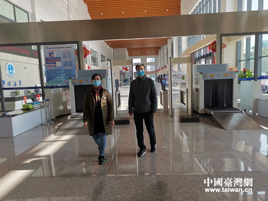 工作人員查看馬尾瑯岐對(duì)臺(tái)客運(yùn)碼頭防疫工作。 (中國(guó)臺(tái)灣網(wǎng) 發(fā))