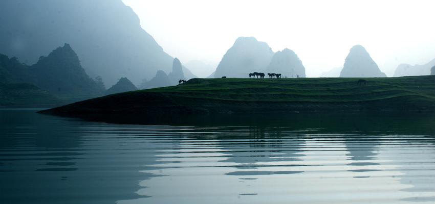 山上神湖,夢(mèng)幻浩坤。浩坤湖旅游休閑度假景區(qū)位于凌云縣伶站鄉(xiāng),距百色至凌云二級(jí)公路約5公里,湖面面積約20平方公里,湖面寬闊,水質(zhì)清澈,湖面四周山巒起伏,連綿不斷,湖中獨(dú)峰聳立,小島顯露,自然風(fēng)光十分優(yōu)美。周邊有5座天窗,可以感受地球心臟的奇觀。當(dāng)?shù)刂饕劬訅、瑤少?shù)民族,獨(dú)特的民俗風(fēng)情令人留戀往返,是走進(jìn)自然、享受自然的最佳去處。