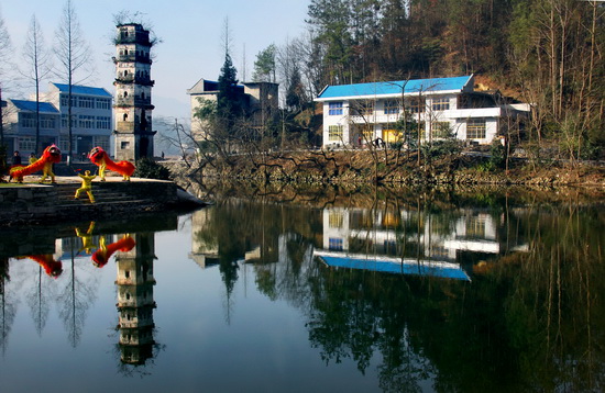 在利川市團(tuán)堡鎮(zhèn)境內(nèi)的318國道旁,有一汪碧波蕩漾的湖水,當(dāng)?shù)厝税堰@里叫做“野貓水”。湖邊有座古樸的宜影塔,古塔四周山青水秀,人杰地靈,塔身倒影湖中,裝點(diǎn)著這里的山山水水。