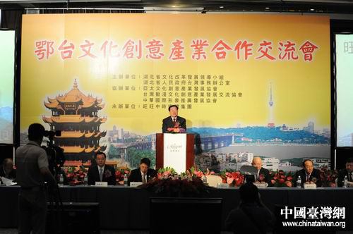 中國(guó)臺(tái)灣網(wǎng)5月9日臺(tái)北消息 5月8日下午,第九屆臺(tái)灣湖北 (武漢)周的主題活動(dòng)之一鄂臺(tái)文化創(chuàng)意產(chǎn)業(yè)合作交流會(huì),在臺(tái)北晶華酒店舉行。本次交流會(huì)由湖北省文化改革與發(fā)展領(lǐng)導(dǎo)小組、省臺(tái)辦共同主辦,旨在搭建平臺(tái)、增進(jìn)了解、凝聚智慧,促進(jìn)湖北和臺(tái)灣文化創(chuàng)意產(chǎn)業(yè)交流與合作,實(shí)現(xiàn)互利共贏、共同發(fā)展。