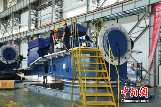 中科風電車間內(nèi),工作人員正在進行部件組裝。鄧永勝 攝