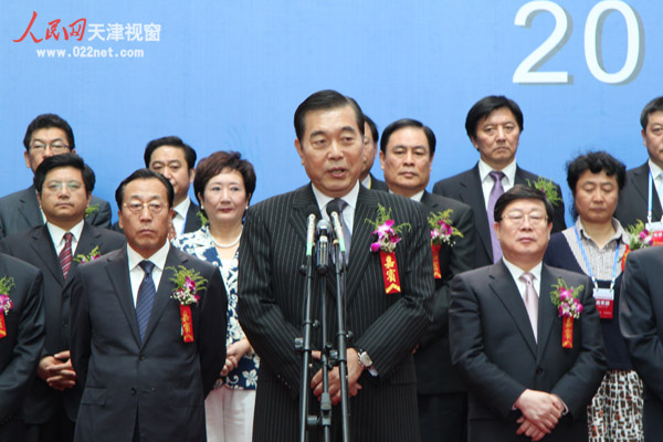 臺北世貿(mào)中心董事長王志剛在2010天津臺灣名品博覽會開幕式上致辭(隋毅 攝)