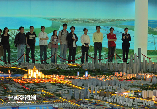 交流團(tuán)參觀(guān)濱海新區(qū)規(guī)劃建設(shè)展館(圖片來(lái)源:天津臺(tái)辦)