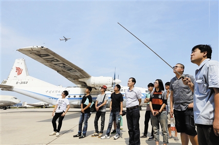 圖為臺灣師生在中國民航大學與不同時期的飛機“零距離接觸”。 本報記者 王曉明 攝影報道