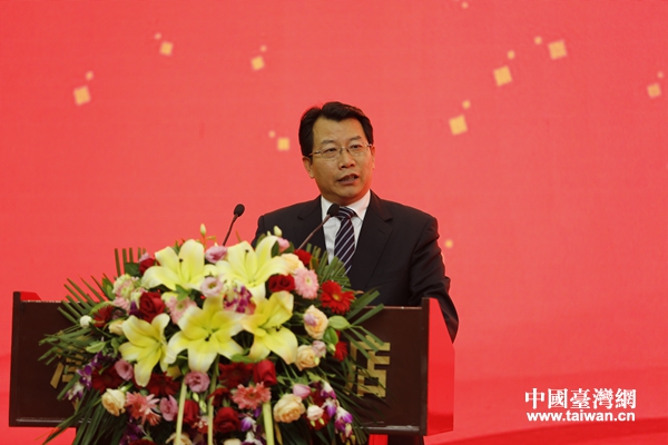 天津市委常委、市委統(tǒng)戰(zhàn)部部長(zhǎng)冀國(guó)強(qiáng)致辭。(圖片來源:天津市臺(tái)辦)