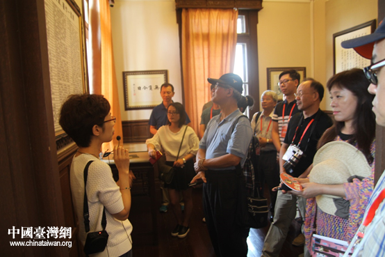 兩岸媒體人參訪梁?jiǎn)⒊o(jì)念館,圖為講解員為大家介紹梁?jiǎn)⒊街。(中?guó)臺(tái)灣網(wǎng) 陳科炎 攝)
