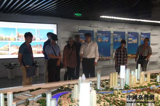兩岸媒體人參訪天津市規(guī)劃展覽館,圖為講解員為大家介紹海河規(guī)劃展區(qū)。(中國(guó)臺(tái)灣網(wǎng) 陳科炎 攝)
