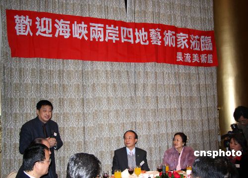1月11日,由中國油畫家學(xué)會(huì)、海峽兩岸創(chuàng)作研究基地主辦,臺(tái)灣長流美術(shù)館、廈門中華兒女美術(shù)館承辦的“海峽兩岸四地畫家畫兩岸——奇巧縱橫寫生交流活動(dòng)”將在花蓮展開。圖為10日晚,臺(tái)灣長流美術(shù)館在臺(tái)北圓山飯店宴請(qǐng)前來參加活動(dòng)的兩岸及港澳30多名畫家,(中)為臺(tái)灣長流美術(shù)館館長黃承志,(左一)致辭者為中國油畫家學(xué)會(huì)副會(huì)長張祖英。 中新社發(fā) 陳立宇 攝
