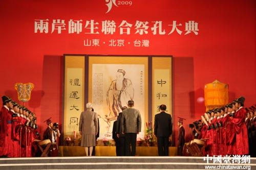 大典以兩岸學生共同呈現(xiàn)《學做人、學做事、學擔當天下》的古今師生對話拉開序幕,活動中來自孔子故里山東、北京、以及臺灣忠信學校共108位學生擔任禮生、佾生、樂生。親民黨主席宋楚瑜主禮正獻后,兩岸師生同唱孔子紀念歌。