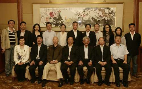 在歡送晚宴上,國民黨文傳會主委李建榮(前右二),民進(jìn)黨顧問許信良(前左三),旺報(bào)社長兼總編輯黃清龍(前右三),與參訪團(tuán)團(tuán)長、香港文匯報(bào)董事長兼社長王樹成(前右四),副團(tuán)長、大公報(bào)總編輯賈西平(前右一)及參訪團(tuán)成員合影留念。圖片來源:大公報(bào)