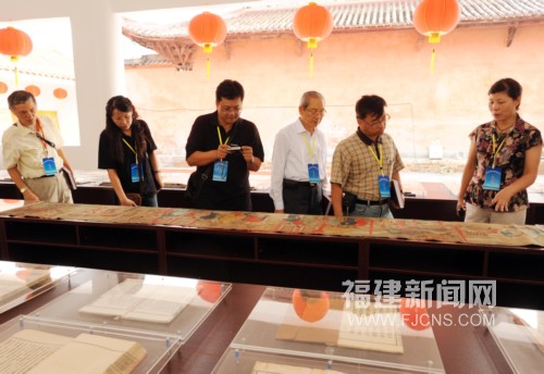10月20日下午,參加在福建上杭縣舉行的海峽兩岸客家族譜論壇的眾多臺灣客家專家、學(xué)者論壇間隙饒有興致地觀看客家族譜展。近年來,客家祖地福建上杭縣以客家族譜為載體,編寫了與兩岸客家人血緣關(guān)系密切的60個姓氏的源流篇,整理出與臺灣有淵源關(guān)系的30個姓氏的播遷圖、還悉心采編蘊藏在60個姓氏族譜中的客家人的上祖世系、族譜族規(guī)、宗祠祖墓、裔孫派衍、名人軼事、修譜序文等圖文編撰工作,并為臺灣客家續(xù)譜修譜做了大量的工作,館藏兩岸共同新修撰的丘、王、李、江氏等20多姓近百種族譜。吸引了海內(nèi)外客家人特別是臺灣地區(qū)客家人紛紛前來尋根謁祖,進行族譜對接。(記者 劉可耕 攝)