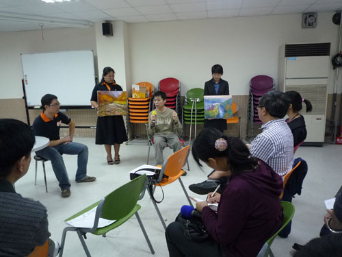 臺(tái)灣伊甸社會(huì)福利基金會(huì),為身心障礙的朋友提供各項(xiàng)社會(huì)福利服務(wù)。大陸記者社會(huì)福利大采訪團(tuán)的記者采訪受助者及他的繪畫作品