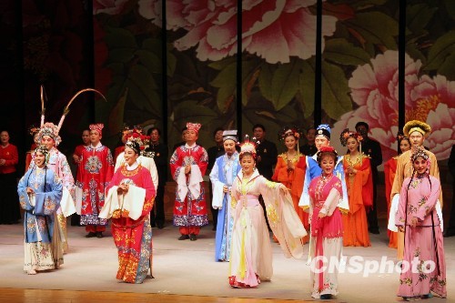 演出在全體演員合唱《天仙配》選段“夫妻雙雙把家還”中結(jié)束。步出演出廳的許多觀眾意猶未盡,連聲稱贊演員“唱得好”、“演得好”。