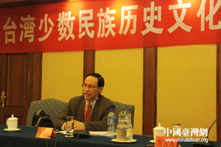 12月23日上午,臺(tái)灣少數(shù)民族歷史文化學(xué)術(shù)研討會(huì)在北京舉行,臺(tái)灣少數(shù)民族教授協(xié)會(huì)理事長(zhǎng)蔡中涵主持發(fā)言。(中國(guó)臺(tái)灣網(wǎng) 徐麗華 攝)