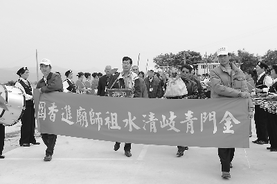 東南網(wǎng)-福建日報(bào)1月19日訊 16日,金門烈?guī)Z青崎清水祖師宮理事會會長洪大偉率領(lǐng)100名信眾到翔安清泉巖進(jìn)香。金門烈?guī)Z青崎清水祖師宮是翔安清泉巖的分爐,共同供奉清水祖。自2006年以來,青崎清水祖師宮已經(jīng)連續(xù)6次組團(tuán)到清泉巖進(jìn)香,清泉巖腰鼓隊(duì)也于2008年10月16日赴金門清水祖宮表演,進(jìn)行兩岸法事交流。(林世雄 黃彩虹 張?zhí)祢?攝)