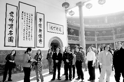 東南網-福建日報2月1日訊(劉永良 文/圖) 1月29日至30日,以臺灣大學客家研究中心主任邱榮舉為團長的“客家學與兩岸發(fā)展研究團”一行18人到永定考察了世界遺產福建(永定)土樓(如圖)、胡文虎紀念館,還與永定縣相關部門舉行“永臺客家文化交流座談會”,就兩岸客家文化的發(fā)展現狀、永臺客家關系、土樓文化、推進永臺客家文化交流合作等專題進行交流研討。